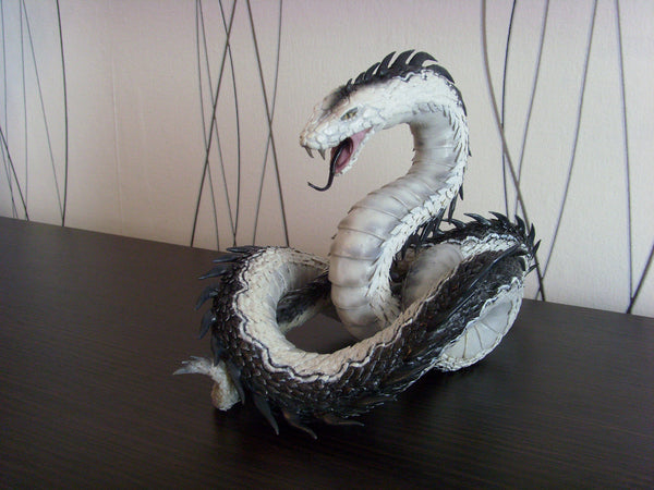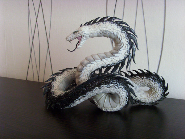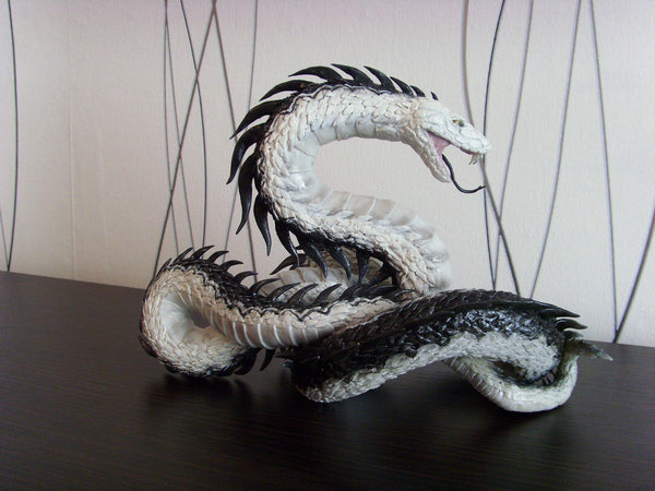 White snake statue - original handmade OOAK, fantasy animal reptile black
